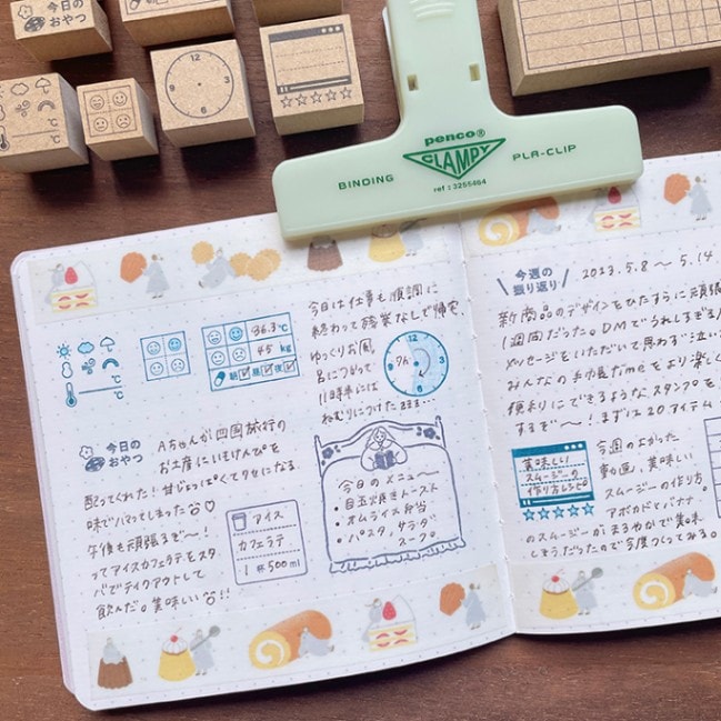 手帳やノートに押すことで簡単に日々の記録を記すことができます。