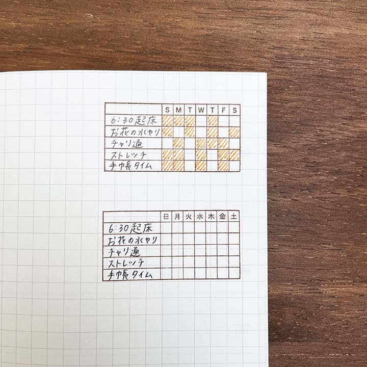 記入した習慣をした日に、その日のマスを塗りつぶすことで、