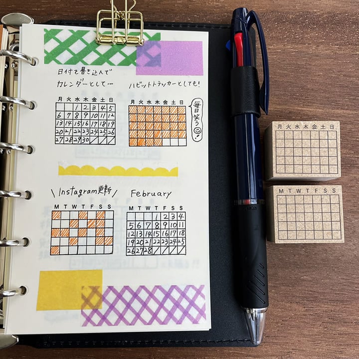 手帳やノートに押すことで簡単に日々の記録を記すことができます。