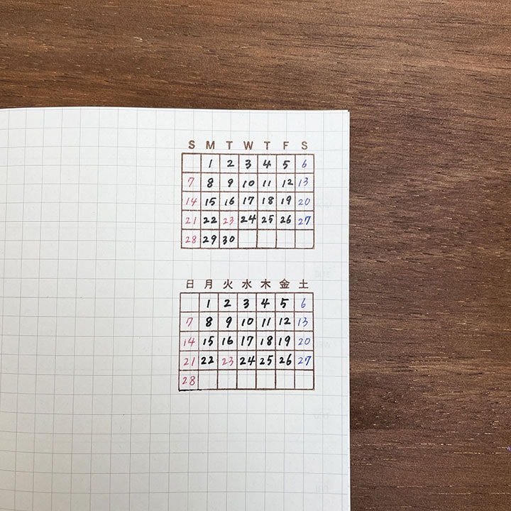 手帳やノートに押すことで簡単に日々の記録を記すことができます。