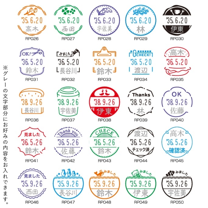ほっこりデザインの日付回転印(日付印) 全22種類