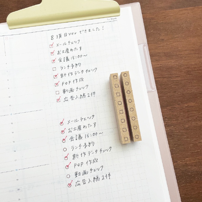 手帳やメモのちょっとした隙間にリストを記入できるスタンプです。