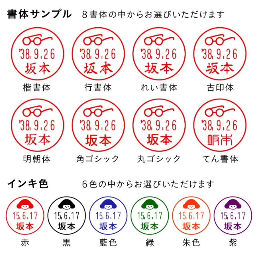 書体:楷書体・行書体・れい書体・古印体・明朝体・角ゴシック・丸ゴシック・てん書体