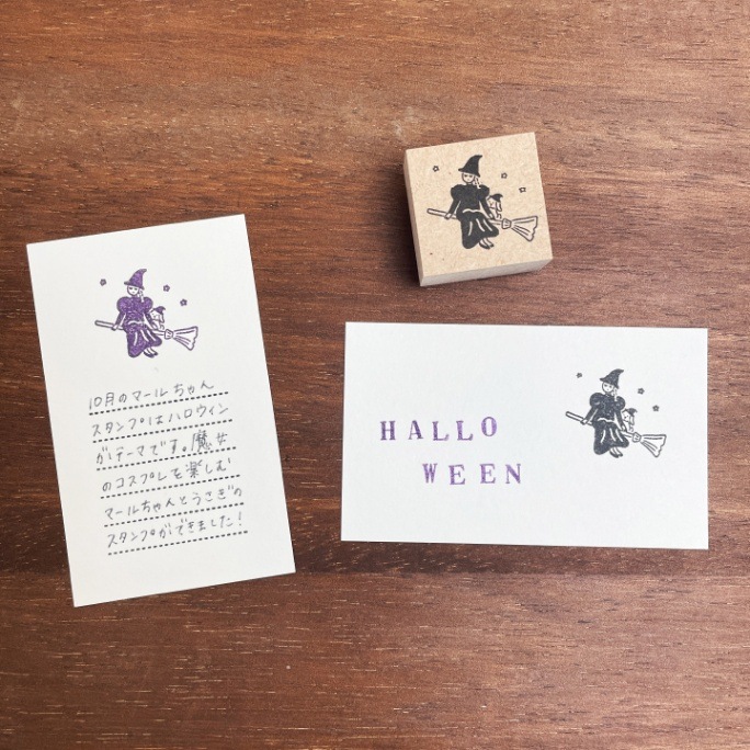 ほうきに乗ったマールちゃんは、プレゼント用のお菓子の袋に押して華やかに。ハロウィンもあったので、とても喜ばれました。