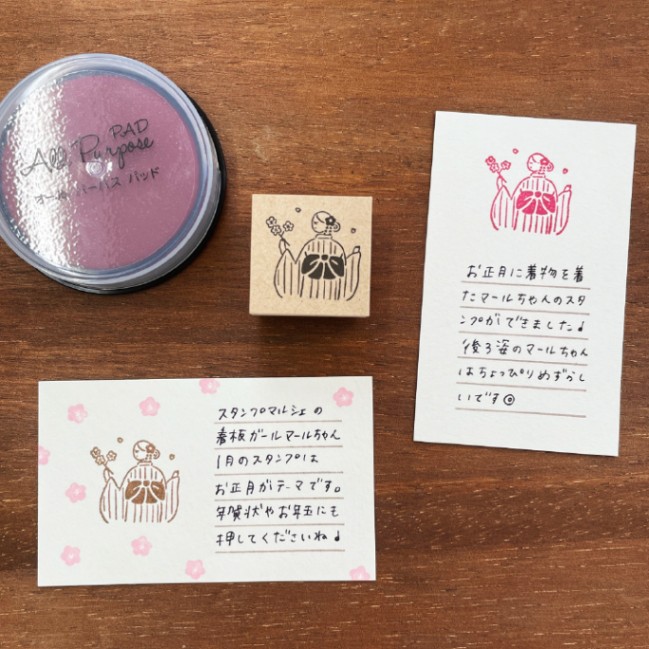1月のマールちゃん イラストスタンプ 着物(後ろ姿)