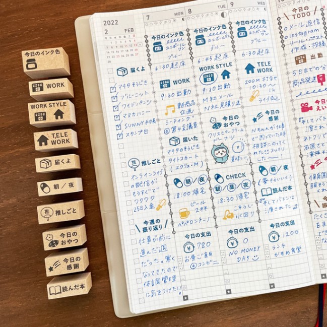 手帳やノートに押すことで簡単に日々の記録を記すことができます。
