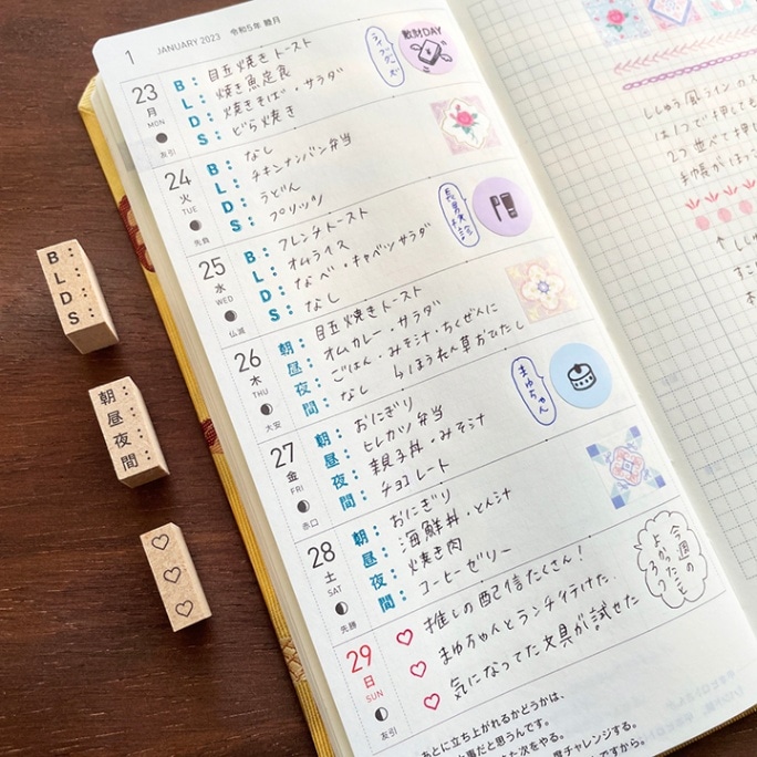 手帳やノートに押すことで簡単に日々の記録を記すことができます。