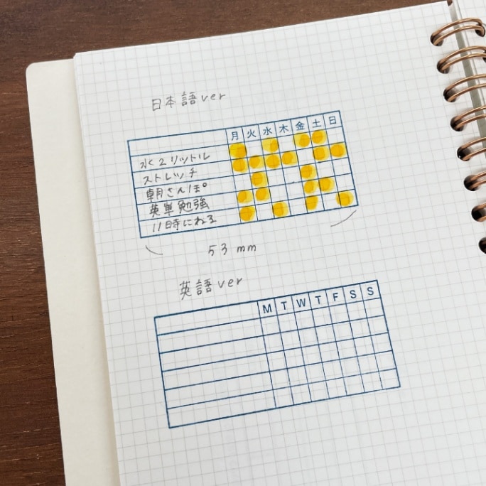 一週間分のハビットトラッカーを記録する週間トラッカーです。