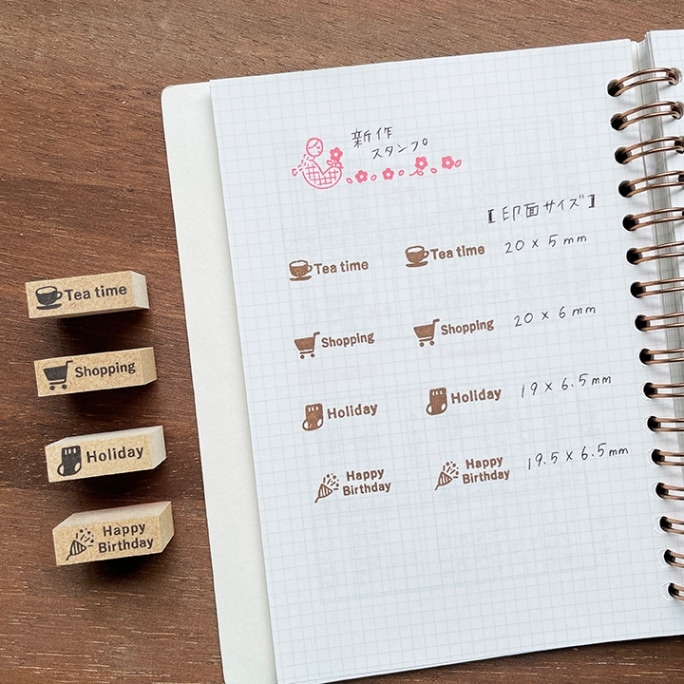 手帳やノートに押すことで簡単に日々の記録を記すことができます。